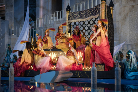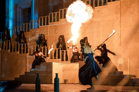 Die Aufführung war actiongeladen: Spektakuläre Wasser- und Feuerelemente, umgesetzt von einem spezialisierten Team, beeindruckten die Zuschauer:innen ebenso wie die glitzernden Kostüme und die technischen Effekte. Ein in Flammen stehender Elefant und fesselnde Stunt-Performances ließen das Publikum staunen. Violinistin Lidia Baich zeigte sich begeistert: „Ich bin ganz begeistert, dass hier Oper gemacht wird, wie es sich gehört. Eine opulente Kulisse und es wird eine Geschichte erzählt mit sehr viel Liebe zum Detail.“ (Quelle: www.kurier.at)